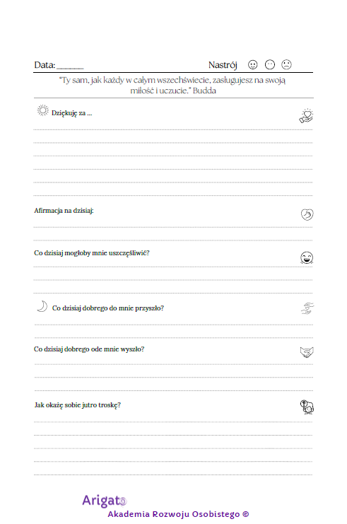🌙 Podsumowanie dnia i refleksje – miejsce na małe sukcesy, wnioski i naukę.